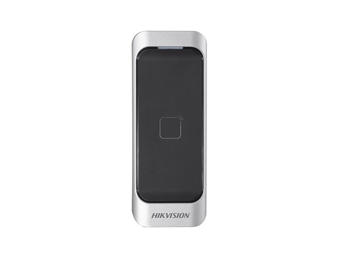 Cititor card Hikvision DS-K1107AM, citeste carduri Mifare 13.56 MHz, distanta citire: ≤ 50 mm, RS-485, Wiegand (W26/W34) protocol si protocol OSDP, Watchdog, indicator de stare si alimentare, buzzer incorporat, tamper, alimentare 12VDC, IP65, dimensiuni — Cititor card Hikvision DS-K1107AM, citeste carduri Mifare 13.56 MHz, distanta citire: ≤ 50 mm, RS-485, Wiegand (W26/W34) protocol si protocol OSDP, Watchdog, indicator de stare si alimentare, buzzer incorporat, tamper, alimentare 12VDC, IP65, dimensiuni 115 mm × 44 mm × 22 mm, montaj pe perete