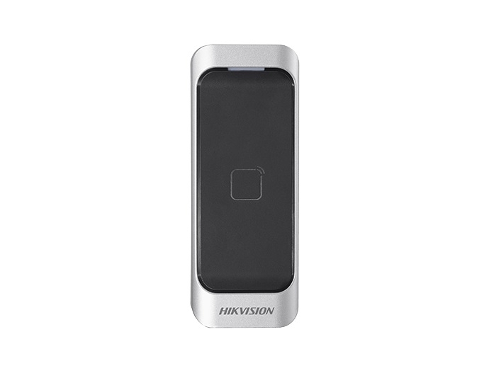 Descriere Cititor de card Hikvision DS-K1107AE, citeste carduri cu frecventa de 125 KHz, distanta citire: <= 50 mm, RS-485, Wiegand (W26/W34) protocol si protocol OSDP, , indicator de stare si alimentare, buzzer incorporat, tamper, alimentare 12VDC, IP65,