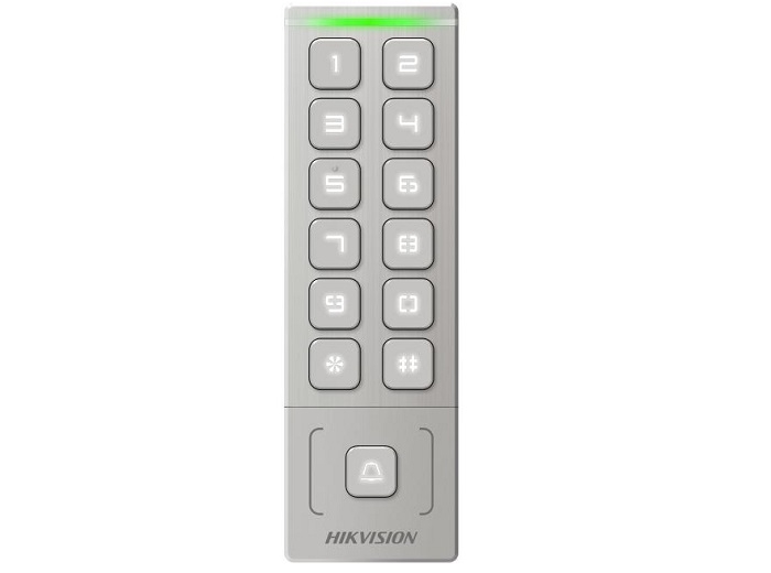 Cititor de proximitate cu tastatura Hikvision DS-K1T809MX, card sau PIN, maxim 1000 carduri si 1000 useri, cititor pentru carduri M1 incorporat, Wiegand out, supports Wiegand 26/34, alimentare: 12 VDC, 1 A, protectie: IP65, dimensiunii: 151 mm Γ 48 mm Γ β Cititor de proximitate cu tastatura Hikvision DS-K1T809MX, card sau PIN, maxim 1000 carduri si 1000 useri, cititor pentru carduri M1 incorporat, Wiegand out, supports Wiegand 26/34, alimentare: 12 VDC, 1 A, protectie: IP65, dimensiunii: 151 mm Γ 48 mm Γ 21.5 mm, montare aparenta.