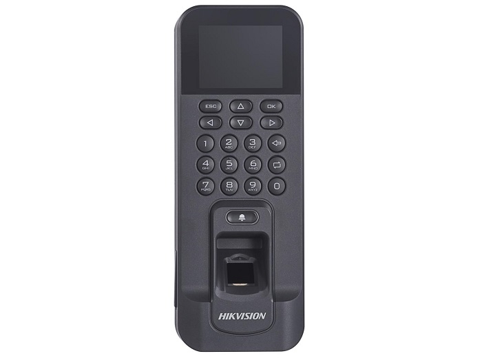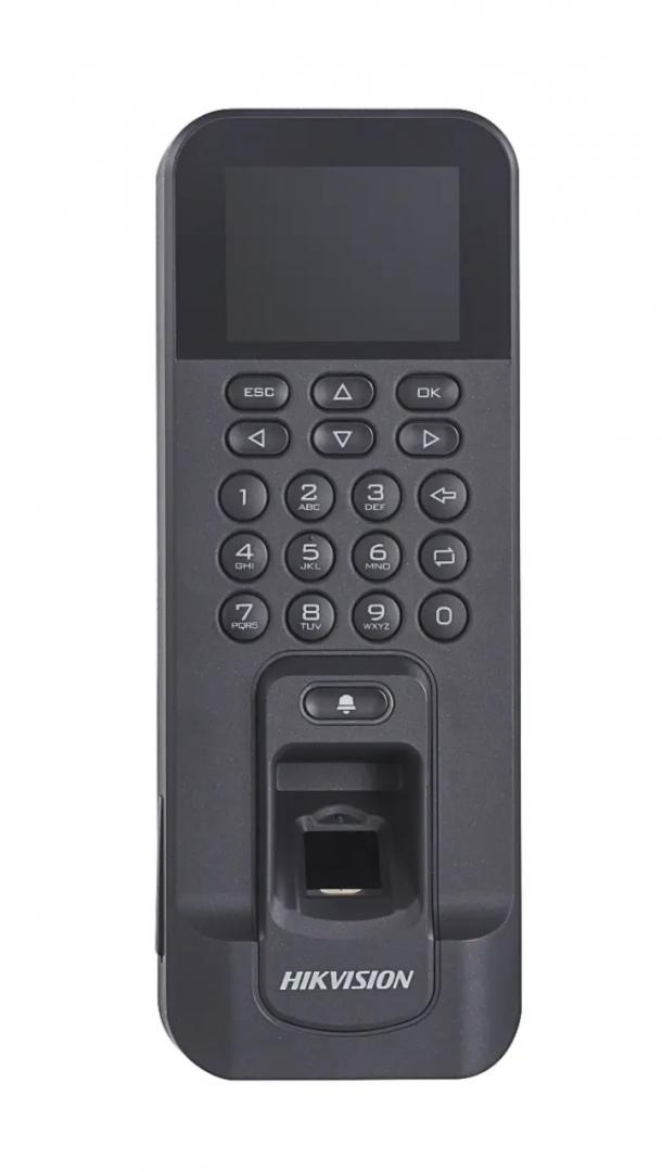 Controler de acces biometric stand alone Hikvision cu tastatura si cartele de proximitate MIFARE, DS-K1T804AMF; Capacitate de stocare: 3,000cartele, 3,000 amprente si 100,000 evenimente; Suporta functii de Access Control si Time Attendance; display — Controler de acces biometric stand alone Hikvision cu tastatura si cartele de proximitate MIFARE, DS-K1T804AMF; Capacitate de stocare: 3,000cartele, 3,000 amprente si 100,000 evenimente; Suporta functii de Access Control si Time Attendance; display LCD2.4-inch; Distanta de citire: 0-5cm; Comunicare: TCP/IP, RS-485, WIFI, Wiegand 26/34; Intrari: alarmax1, senzor usa x1, buton iesire x1; Iesire: releu x1, alarma x1; Alimentare 12 VDC/2 A; Dimensiuni: 205mm × 76.5mm × 37mm.