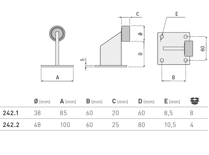 LIMIT SWITCH CU PLACA FIXARE VARIANTA MICA — Door stop cu placa de fixare - varanta mica, Ø 38 mm, dimensiuni 85 x 60 x 20 x 60 x 8.5 mm