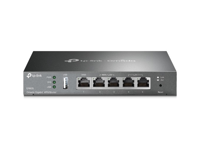 "Omada Gigabit VPN Router PORT: 1× Gigabit RJ45 WAN Port, 2× Gigabit RJ45 WAN/LAN Ports, 2× Gigabit RJ45 LAN Ports, 1× USB 2.0 Port; FEATURE: Integration with Omada SDN Controller, Support 20 IPsec VPN Tunnels, 16 PPTP/L2TP VPN Tunnels, 16 OpenVPN