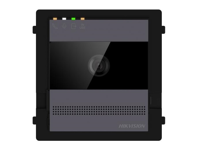 POST DE EXTERIOR CU CAMERA HD, DIN ALUMINIU, 2 FIR — Post de exterior modular din aluminiu cu camera 2MP, IR, WDR, unghi de vizualizare 133° orizontale, 82° vertical, microfon omnidirectional si difuzor incorporate, 0-2 butoane apelare (ajustare flexibila), capacitate 2000 utilizatori, interfata retea cablata pe 2 fire 10/100 Mbps, 2 intrari alarma, 1 tamper, 1 interfata buton exit, 1 intrare contact usa, 2 x RS-485, 2 interfete control usa, DIP switch, 4 indicatoare LED, montare aplicata sau ingropata, protectie IP65, IK08, aliementare 48V, distribuitor DS-KAD7060EY sau 12VDC