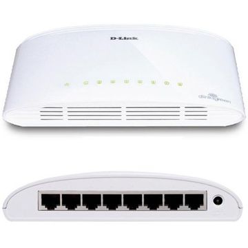 Switch D-Link DGS-1008D, 8 port, 10/100/1000 Mbps β D-Link Switch DGS-1008D, 8 porturi Gigabit, Capacity 16Gbps, faramanagement, desktop, plastic, alb
