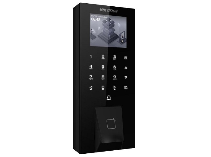 Cititor de amprente si carduri M1 cu tastatura, ecran LCD de 2.4 inch, Wi-Fi 2.4 G (802.11b/g/n), capacitate 5000 amprente, 5000 carduri si 150000 evenimente, alarma 2 in si 1 out, tamper, 1 interfata RS-485, 1 interfata Wiegand (W26, W34), 1 port USB, suport pentru PoE, alimentare 12VDC, IP65, dimensiuni 172 x 76 x 27.5 mm, montare pe perete